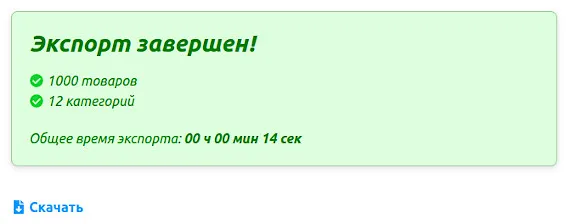 Заголовок раздела «Запуск экспорта»Нажмите «Экспортировать», дождитесь завершения и скачайте файл по ссылке.