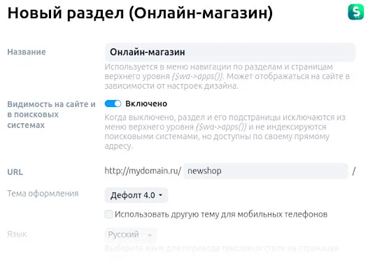 - Добавьте новый раздел с витриной Shop-Script: