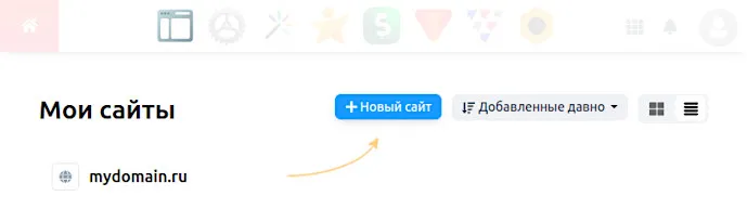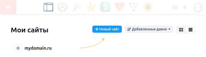 - В разделе Сайт → Мои сайты добавьте новый сайт: