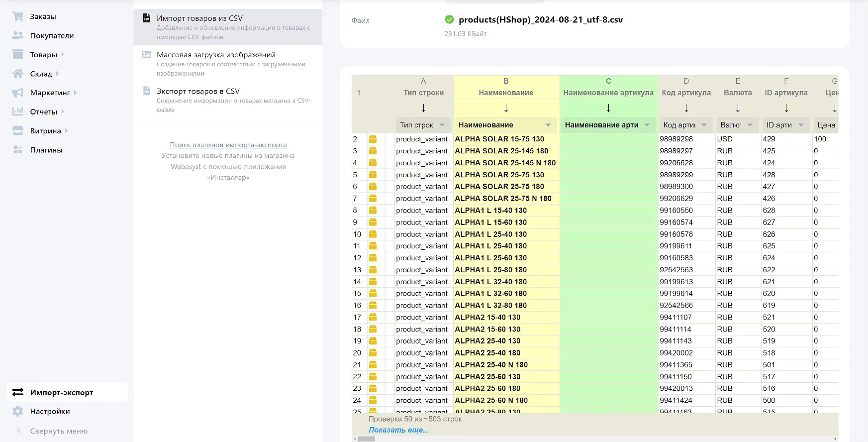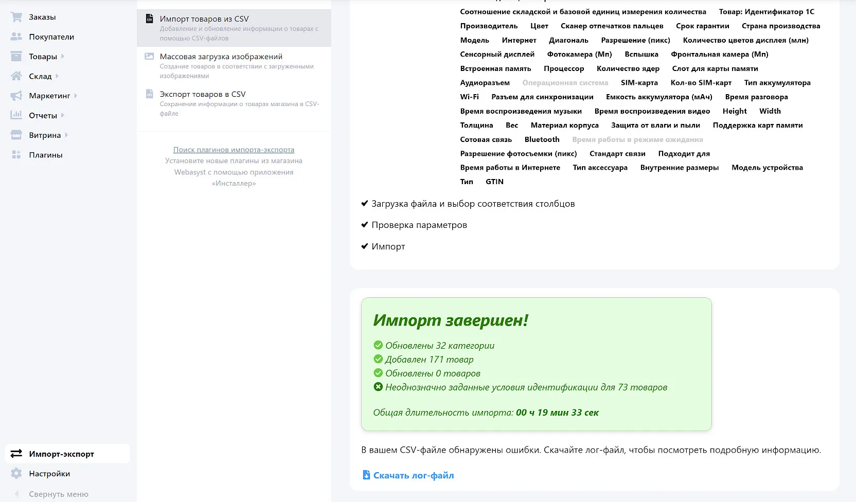Импорт товаров в Shop-Script