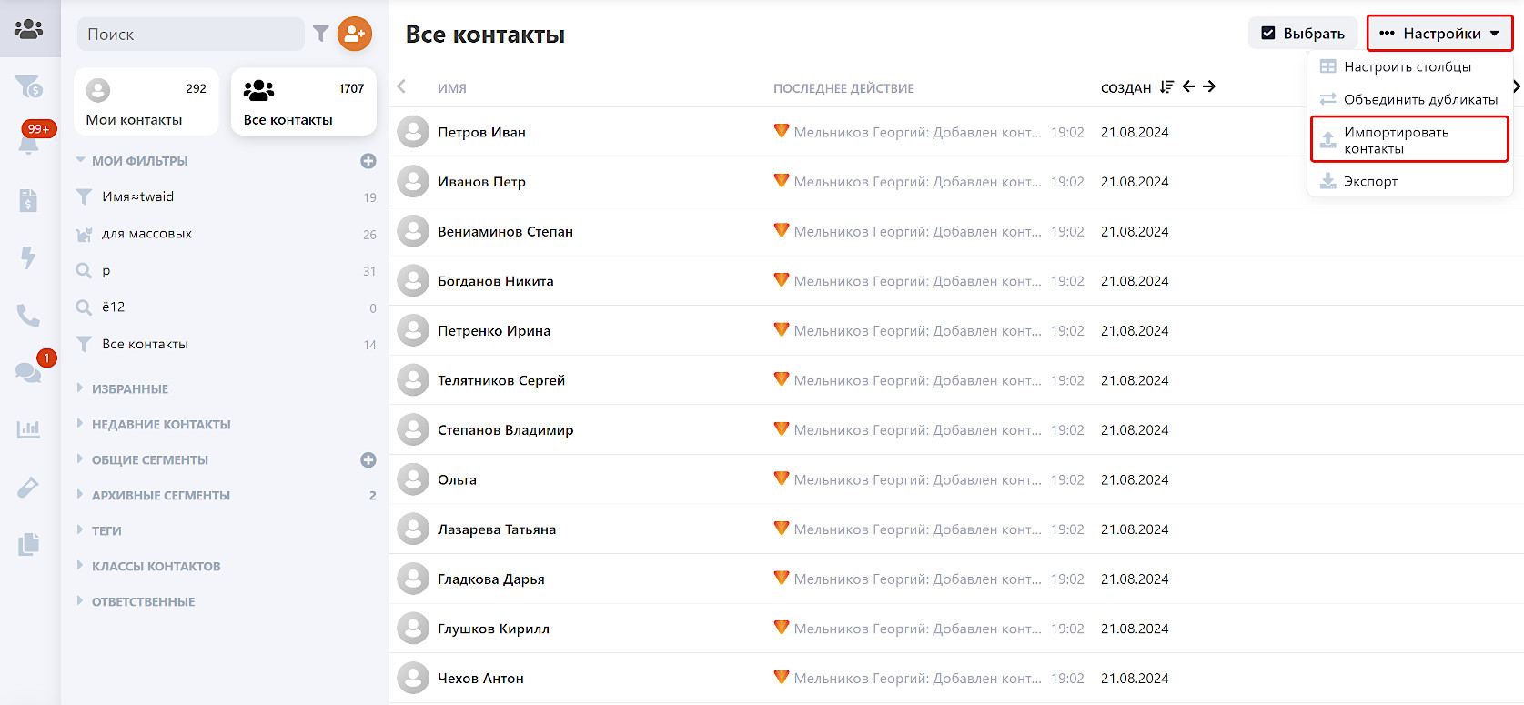 Импорт контактов в CRM