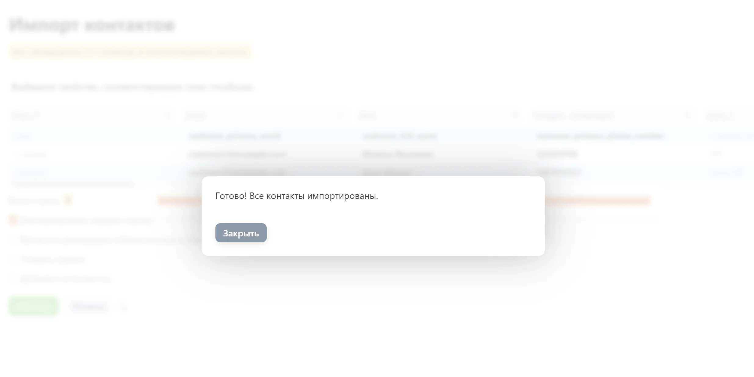 Важно: не закрывайте вкладку браузера до появления сообщения о завершении импорта.