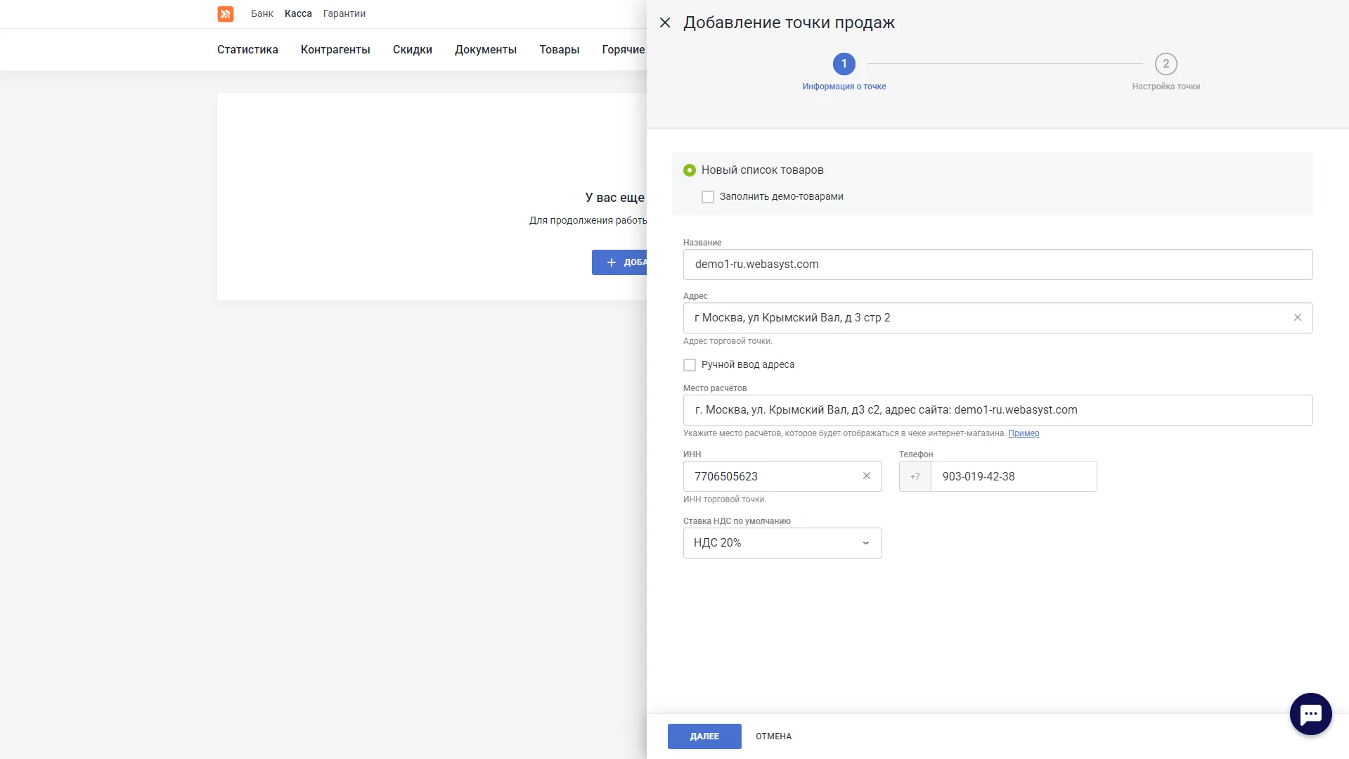 Заголовок раздела «2.4. Добавьте точку продаж»-