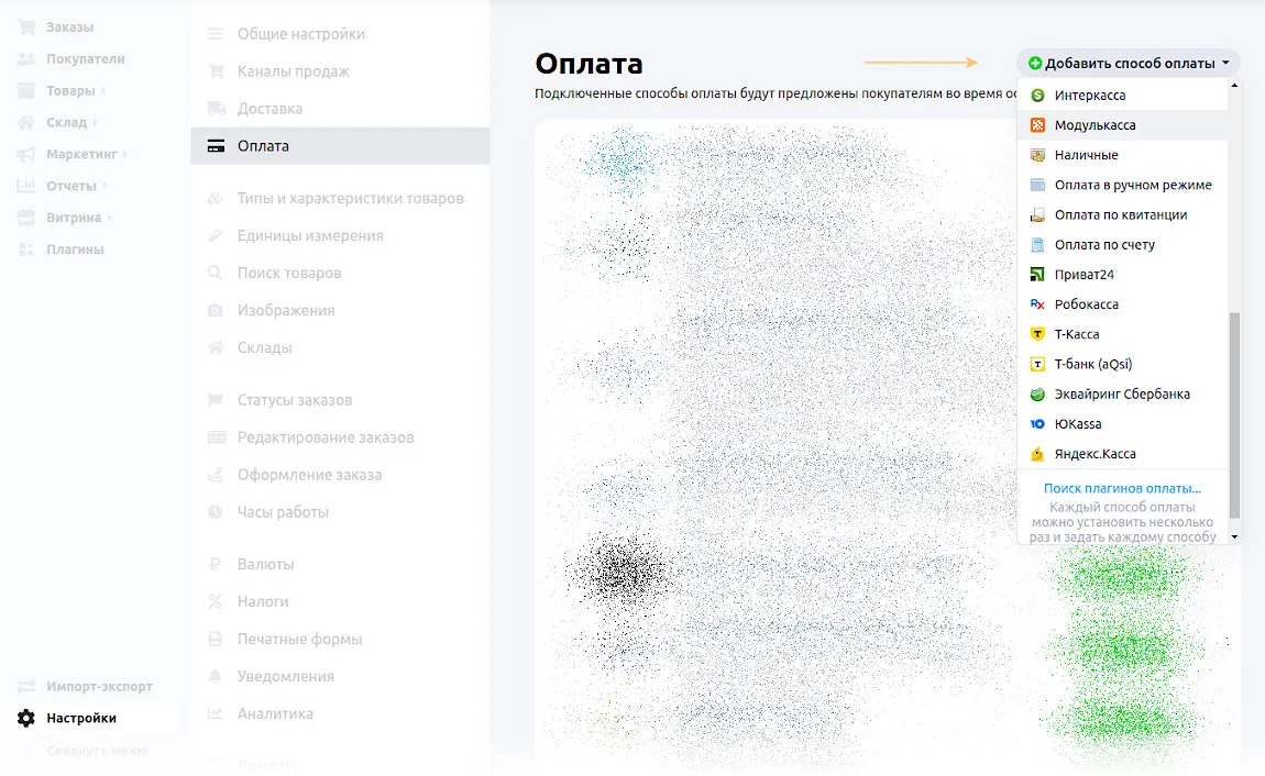 В разделе «Shop-Script → Настройки → Оплата» добавьте новый способ оплаты через «МодульКассу».