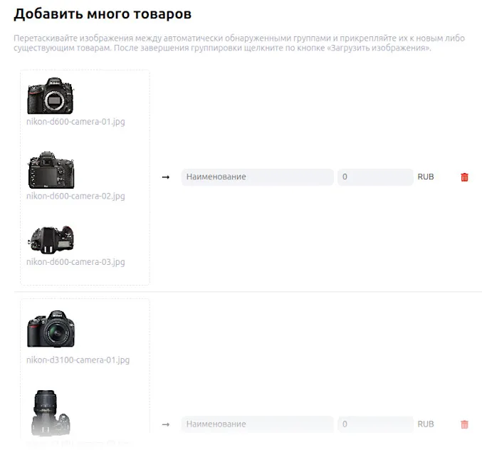 nikon-d600-camera01.jpgnikon-d600-camera02.jpgnikon-d600-camera03.jpgПосле загрузки изображения автоматически сгруппируются по товарам: