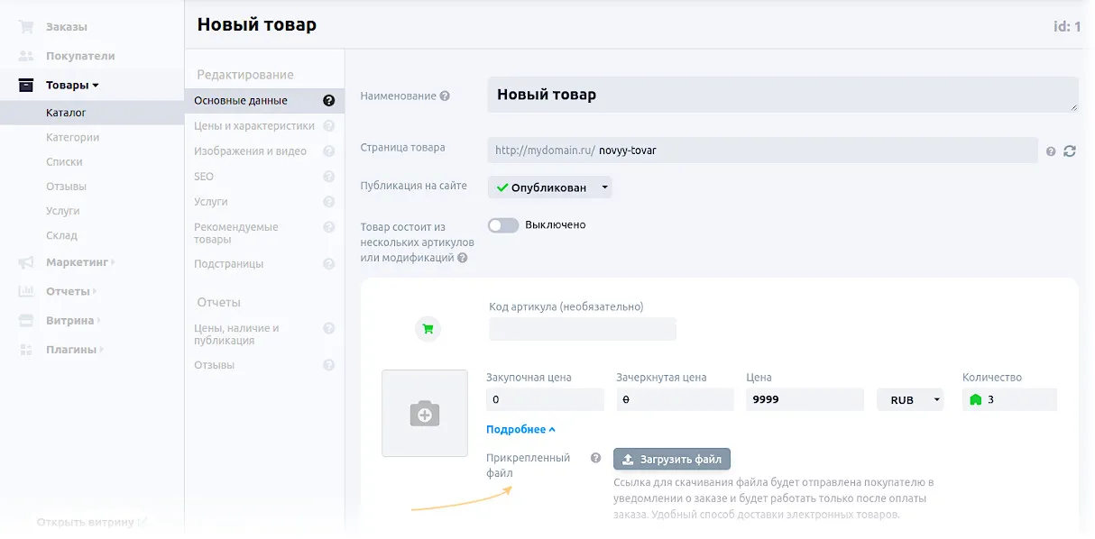 Заголовок раздела «Загрузка файла»Перейдите в редактор товара в панели управления магазином. Найдите поле «Прикрепленный файл» и загрузите ваш файл.