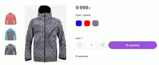 Если ваш товар продаётся в нескольких вариантах (например, разные цвета или размеры), можно настроить так, чтобы при выборе каждого варианта на странице показывалось своё фото. Это поможет покупателю сразу увидеть, как выглядит конкретный цвет или размер.