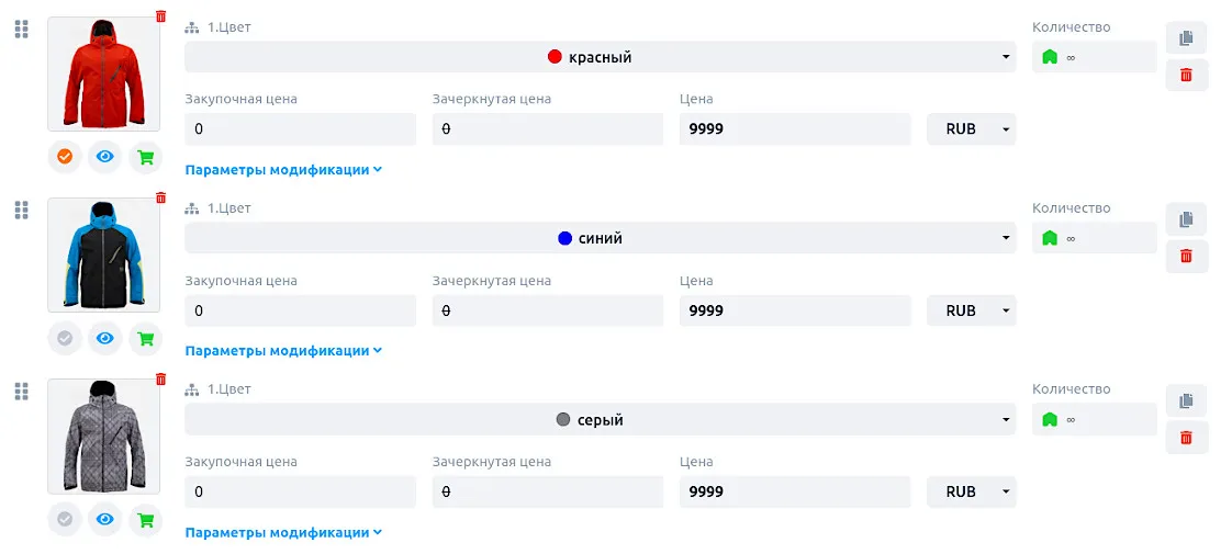 Повторите для всех модификаций товара и сохраните изменения.