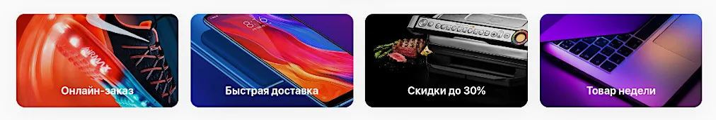 - Баннер — показывает на главной странице промокарточку или кадр слайдера с изображением, текстом и ссылкой.