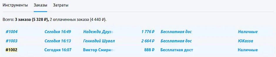 Над списком отображается сводка: общее количество заказов и количество оплаченных заказов.
