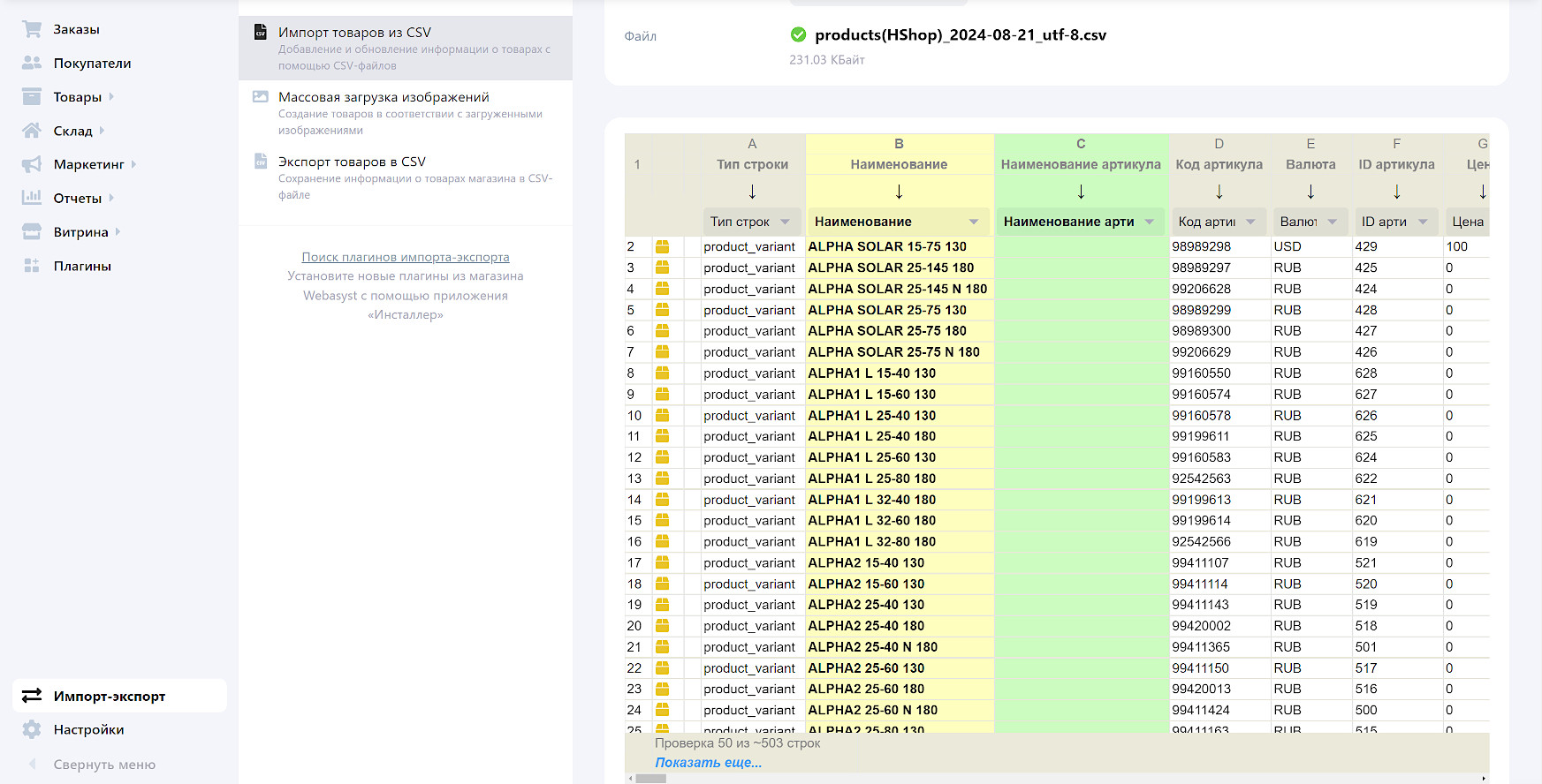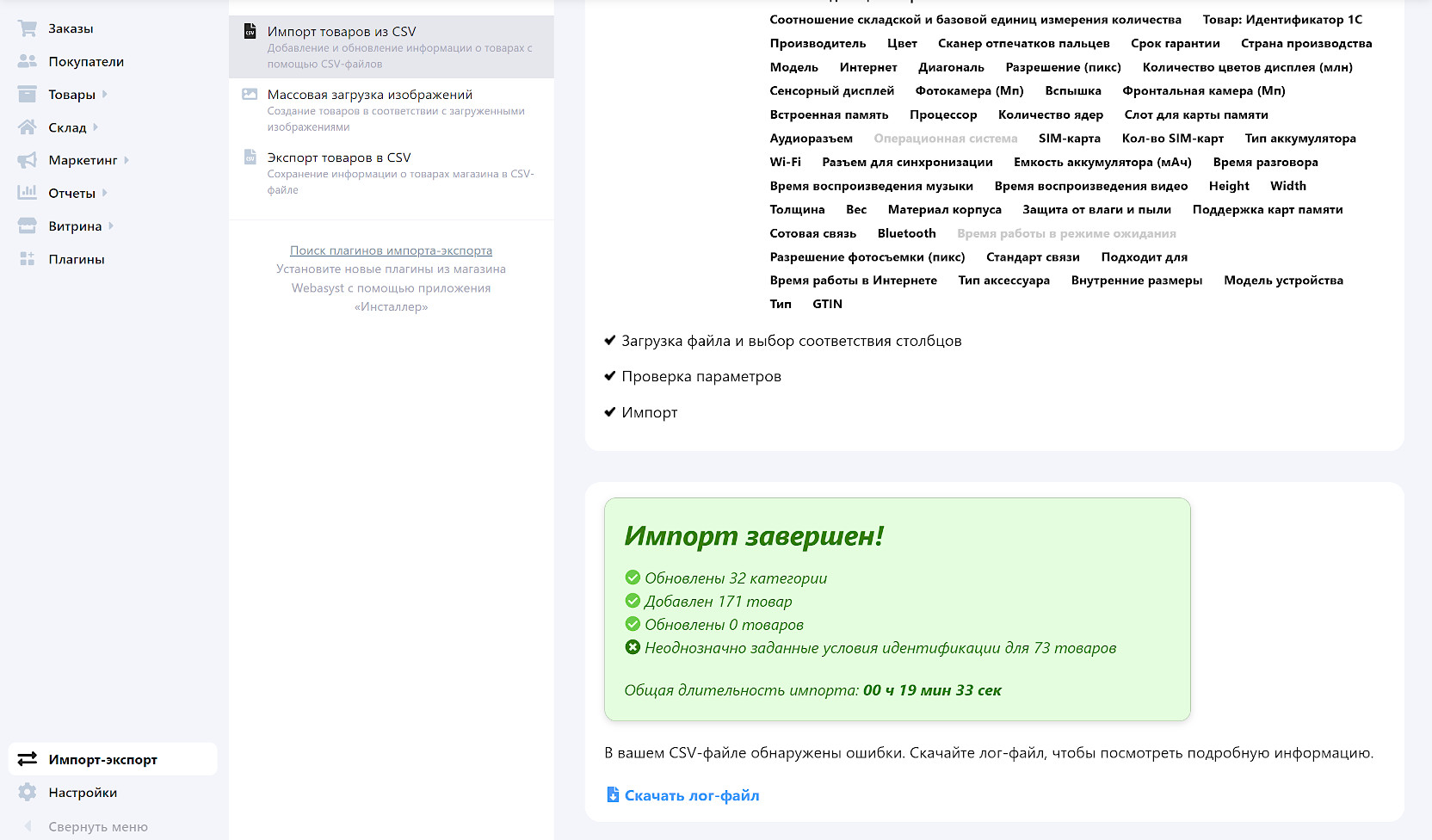 Импорт товаров в Shop-Script