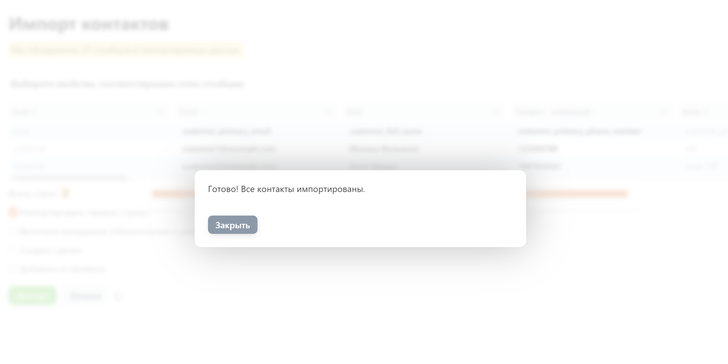 Настройте соответствие столбцов файла полям контактов в CRM и нажмите «Импорт».