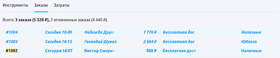 Над списком отображается сводка: общее количество заказов и количество оплаченных заказов.