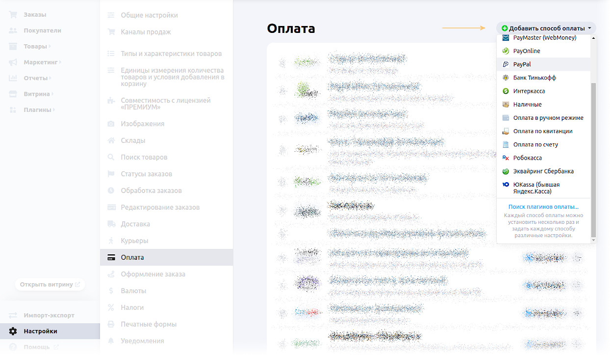 Заголовок раздела «3. Добавление способа оплаты»Перейдите в раздел Настройки → Оплата. В меню «Добавить способ оплаты» выберите плагин PayPal.